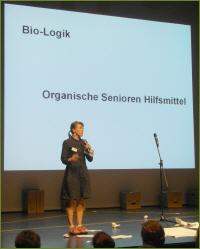 Bei Klick auf das kleine Bildchen rechts (zu sehen ist darauf Dr. Rionach Ni Neill bei ihrer Präsentation von getanzter Bio-Logik - so genannten organische Senioren-Hilfsmittelln), öffnet sich ein kleiner VideoClip zur besseren Veranschaulichung. Foto und VideoClip: EH (mitunter verzögert sich das erstmalige Abspiel)