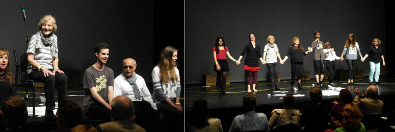 Beim Klick auf obige Fotos öffnet sich ein VideoClip (mit Verzögerung beim erstmaligen Abspiel), der wiederum einen Mini-Ausschnitt vom Abschluss des Theaterstückes während der Abschlussveranstaltung des Kongresses zeigt. VideoClip: politikorange TV, Fotos: EH